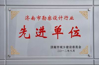 2012年8月,我院荣获济南市城乡建设委员会授予的“济南市勘察设计行业先进单位”荣誉称号。苏玉玺副院长荣获“济南市勘察设计行业先进个人”荣誉称号。