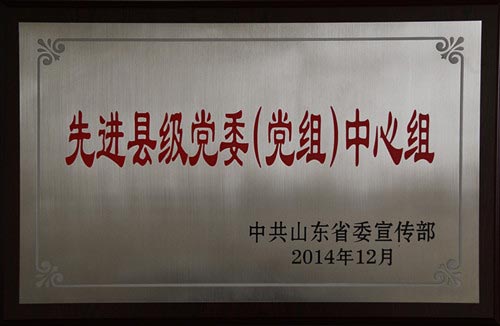2014年12月,我院党委中心组荣获中共山东省委宣传部授予的“先进县级党委(党组)中心组”称号。