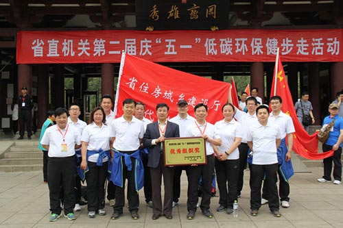 4月26日下午,由省直机关工委和省体育局主办的省直机关第二届庆“五一”低碳环保健步走活动在千佛山景区举行,副省长王随莲出席启动仪式并与省直机关干部职工代表一起参加了健步走活动。我院精心组织10名职工,代表省住建厅参加比赛,按赛事规则顺利走完了6.5公里的竞赛线路,获得了组委会颁发的优秀组织奖。