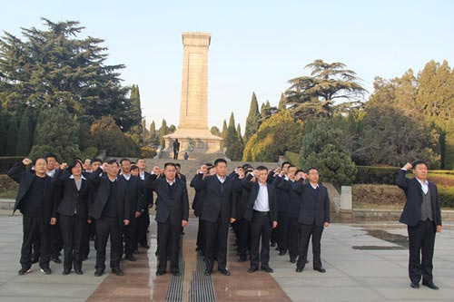 培训期间,为提升党的十九大精神学习实效,创新“两学一做”学习教育的活动载体,增强广大党员干部的党性修养和党性意识,院党委组织党员干部到鲁中抗日纪念馆和莱芜战役纪念馆红色教育基地接受了党性教育。在鲁中抗日纪念馆和莱芜战役纪念馆,大家边走、边看、边听,回顾了革命先烈们可歌可泣的革命事迹,感受到了中华民族不屈不饶、生生不息、英勇抗战的大无畏精神。在全景画馆,大家仿佛置身于炮火连天、硝烟弥漫的战场,真实感受到革命先驱报效祖国的爱国情怀和英勇顽强的战斗精神,使在场党员干部接受了一次深刻的精神洗礼。在革命烈士纪念碑前,全体党员庄重地举起右手,面对鲜红的党旗,庄严宣誓,重温了入党誓词。