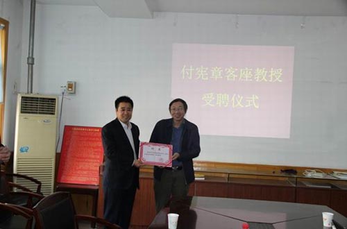 在客座教授受聘仪式上,蒋国盛院长代表学校向付宪章院长颁发了客座教授聘书,并代表学校和学院对付宪章院长受聘中国地质大学(武汉)客座教授表示欢迎和祝贺。