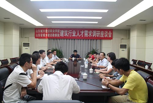 为探寻鲁班文化育人工作,提高学生的社会认知能力,8月28日下午,山东城建学院市政与环境工程系暑期调研队在系党总支副书记王春华的带领下,师生7人专程到我院调研建筑行业人才需求。我院常务副院长苏玉玺、工会主席张方贵、人力资源部主任张焱、团委副书记管波、在我院工作的城建学院优秀毕业生代表及院相关公司负责人参加了调研座谈会。